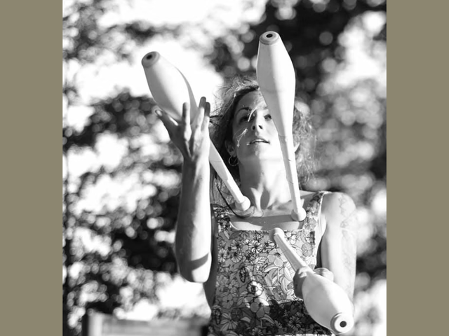 Malo po malo se pojavi ritem, ki se postopoma gradi skozi zvok, keglje in telo.