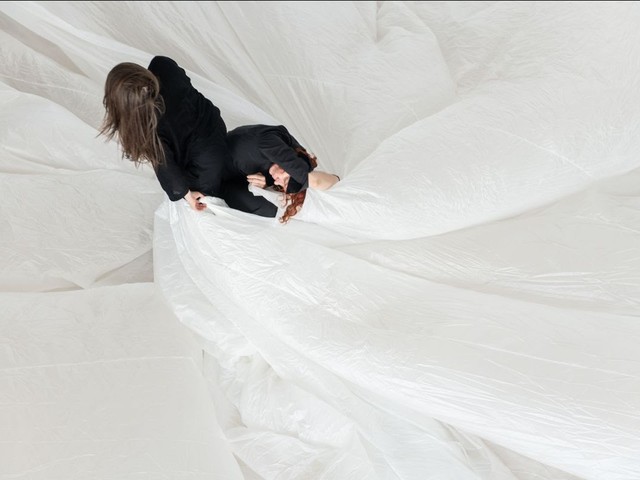 Instalacija je nastala iz materiala iz istoimenske predstave (premiera 2022). To je tretja oblika predstavitve projekta, ki ga avtorici razvijata v letu 2023. Odvila se bo v obliki instalacije. Obiskovalci so povabljeni v 20 minutni okvir, kjer se v svojem času posvetijo večplastno oblikovanem prostoru, ki združuje vse tri aspekte predstave: telo - tkanina - zvok.