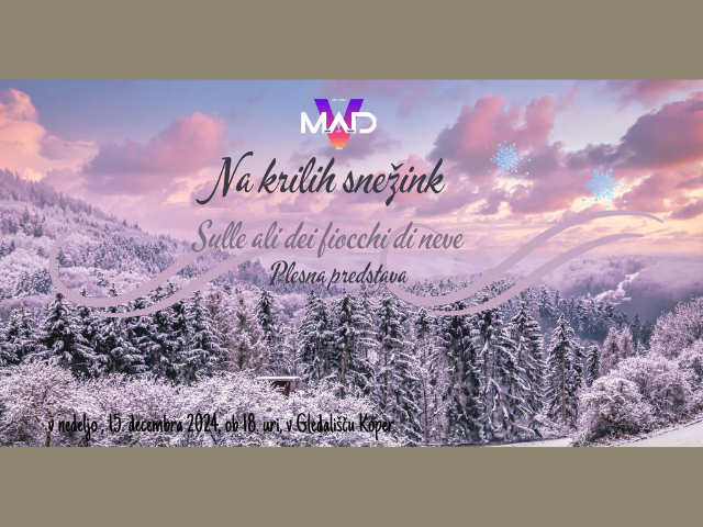 Kaj se zgodi s snežinko, ki pade izpod neba? Koga sreča na poti čez širne poljane? Kakšne dogodivščine jo čakajo? Vabljeni na zimsko plesno predstavo Na krilih snežink.