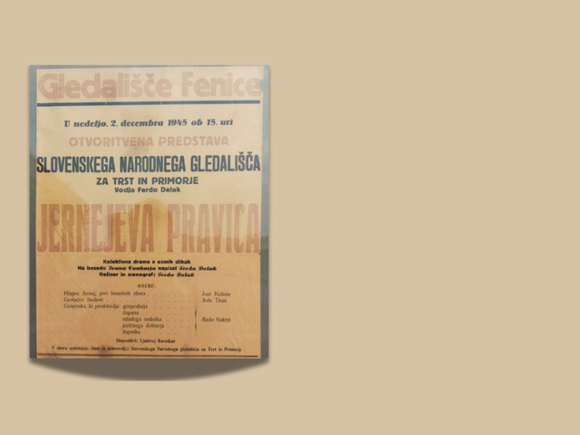Ob 80-letnici prve po-vojne predstave Slovenskega gledališča vabljeni na okroglo mizo Spomin je prihodnost. Skupaj z Aljo Predan, Bogomilo Kravos, Nevo Zajc in Martinom Lissiachom se bo spomnilo zgodovinskih povojnih začetkov gledališča ter njegove pomembne vloge kot prostora identitete, dialoga in medkulturnega povezovanja v Trstu.