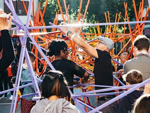Združite in podružite se pri zabavnem in živahnem sestavljanju ogromne strukture iz lesenih palic. Ko boste skupaj opravili trdo delo, pa lahko vsak po svoje raziskujete stvaritev in se sprehodite okoli nje ali skozi njo. Stebla so interaktiven in barvit dogodek za ljudi vseh starosti, ki na inovativen način povezuje oziroma prepleta sodobno umetnost in performans.
