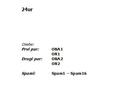 Opombe: Para se med sabo ne vidita. Nihče izmed njih ne vidi Spamov. Zaželjeno je, da se premiki prvega para pojavijo večkrat, kot so nakazani.