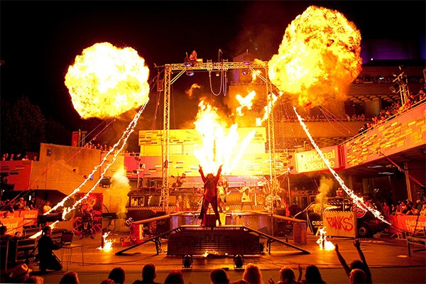 Na Mestnem trgu bo poleg večjih ulično-gledaliških produkcij v četrtek na ogled poetični akrobatski performans na hoduljah Klicanja ameriških umetnikov The Carpetbag Brigade in petkov šov HOP! v izvedbi Francozov Cie. Fracasse de 12.