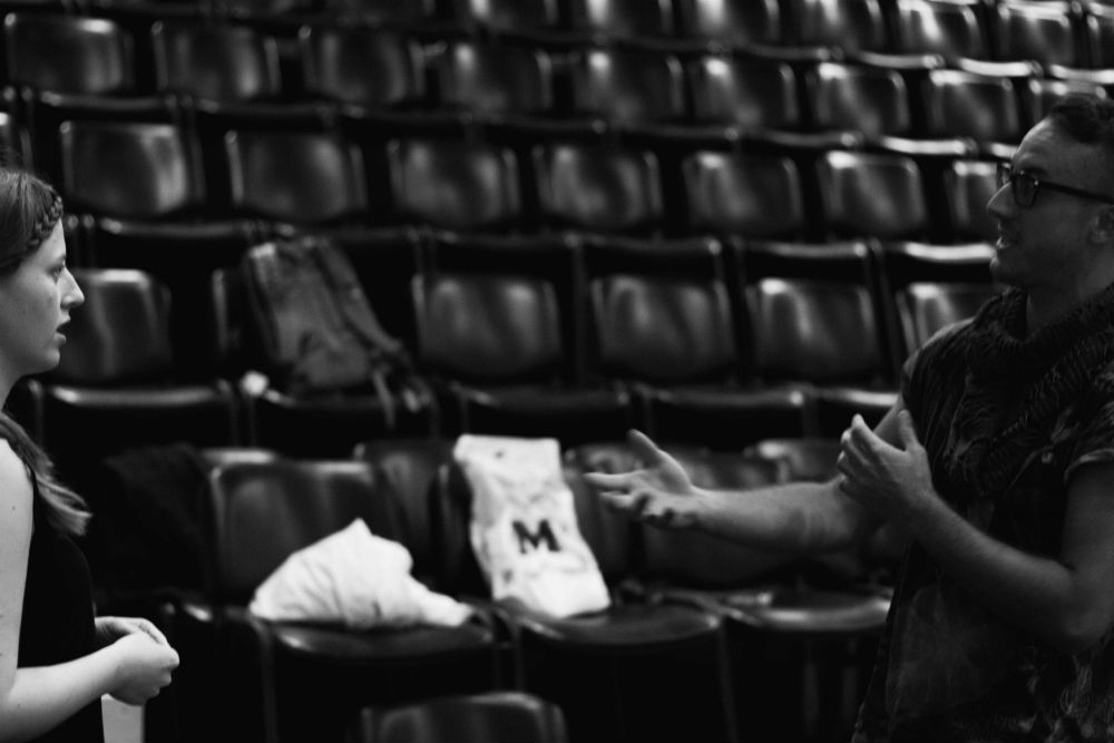 Aha. (smeh) Vse to je vpliv mojega študija muzikala. Ne želim povedati neke zgodbe, zgolj deliti, kar doživljam na odru s publiko v dvorani. Obseden sem s trenutki, mislim, da lahko predstavljamo gib brez spremljajoče glasbe. Lahko na cesti opaziš nek trenutek in se te dotakne ne, da bi o njem karkoli vedel. Na primer Liz LeCompte iz Wooster Group preprosto sklada ples, kot da bi bil glasba, z besedami. Ampak besede same po sebi niso pomembne, so zgolj dodatna plast vsebine.