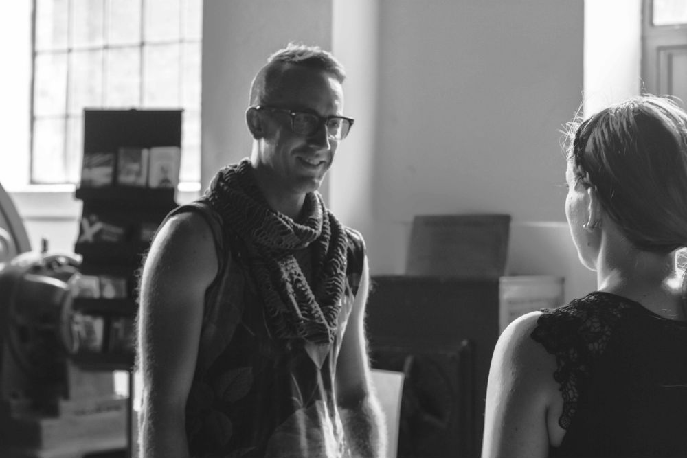 No, sam s seboj se pogovarjam že v New Yorku. Ampak ja, v puščavi še bolj, ker sem šel kampirat po povsem zapuščenih predelih. Glede na to, da sem pred kratkim videl Hamiltona (muzikal, op. a.), sem veliko pel, poskušal sem biti čim bolj glasen, ker se bojim medvedov. Peti dan sem se že pogovarjal z drevesi, s skalami ... Nisem doživel razsvetljenja. Imel sem pa najljubšo skalo (tukaj začne oponašati: ''Hvala ti skala, za vse kar si mi dala ...'') (smeh) Tako se je začelo veliko mojega dela, preko raziskovanja nevrološke pokrajine, vsega, kar se dogaja v človekovi glavi. To poskušam prikazati v svojih predstavah. Ne glede na to, koliko tehnologije uporabljam, poudarek je še zmeraj na odnosih med ljudmi. Vse, kar je na odru, sčasoma postane manj pomembno in se staplja z ozadjem, pomembna je gledalčeva izkušnja, v dvorani, na predstavi. Youarenowhere je predstava za vse v dvorani, ki jo doživljajo skupaj. Zveni osladno ampak ... Si videla predstavo?