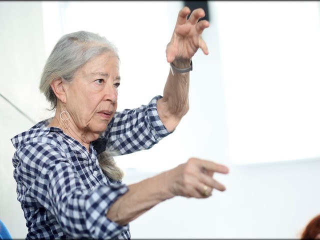Deborah Hay se pravkar mudi v Ljubljani, saj bo v sredo, 7. 6. v Stari mestni elektrarni – Elektro Ljubljana premierno uprizorjeno njeno delo Inside the Outside.