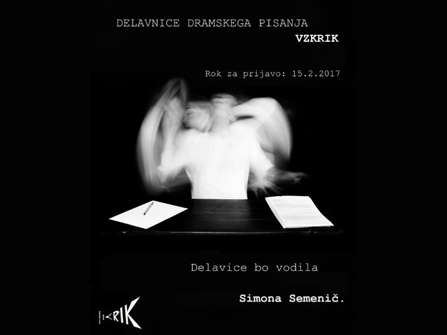Delavnica dramskega pisanja Vzkrik poteka že tretje leto. Lani je nastalo sedem celovečernih dram, ki bodo letos bralno uprizorjena na Festivalu Vzkrik (24. 3. 2017 - 26. 3. 2017), v sklopu katerega bodo potekale tudi dodatne delavnice. Za dodatne informacije nam pišite.