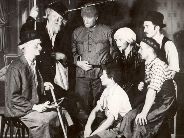 Fotografija iz predstave »Oče« gledališke skupine gluhih in naglušnih pod vodstvom Vinka Rupnika, leta 1936 / Foto Arhiv ZDGNS