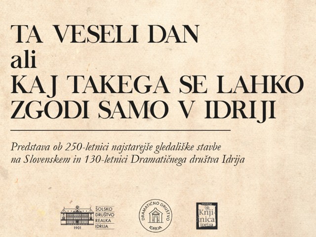 Idrijski ljubiteljski gledališčniki dveh generacij, starejše v okviru dramatičnega društva in mlade iz Male gledališke šole Gimnazije Jurija Vege Idrija, bodo avtorsko predstavo Ta veseli dan ali Kaj takega se lahko zgodi le v Idriji na odru najstarejšega slovenskega gledališča uprizorili v soboto, ponovitvi bosta 10. in 19. novembra.