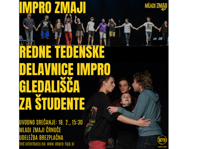 Prijave in vprašanja: info@impro-liga.si do zapolnitve mest. V prijavo napišite Impro zmaji, svoje ime, telefonski kontakt, fakulteto in letnik šolanja.