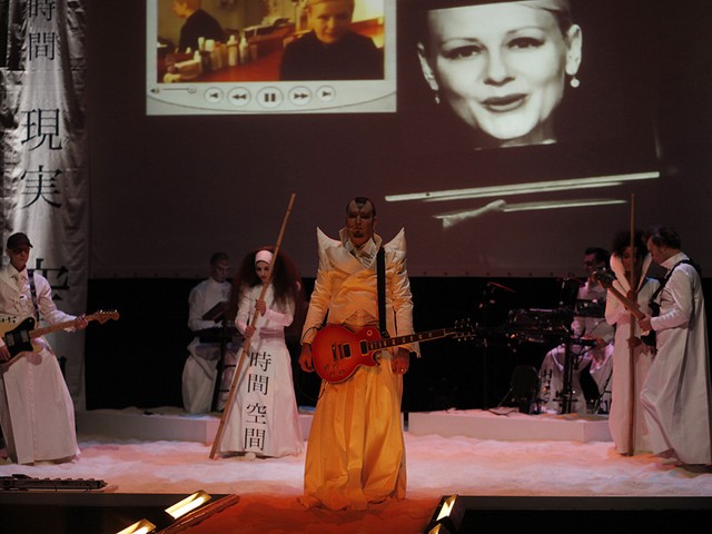 Če je prevladujoča barva Siddhartinih samostojnih koncertov črna, je tokrat oder osvetljen z belino dolgih oblek, pod katere se je podpisal Alan Hranitelj. Potisk črnih kitajskih pismenk harmonično zaokroži scensko-kostumski dialog in nastopajoče – ob uporabi svetlobnih efektov – postavi v sfero metafizike.