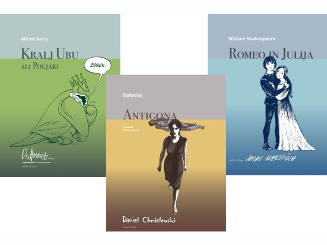 Klasike v stripu so omenjeni inštituti soustvarjali med letoma 2019 in 2023. Slovenska izdaja Antigone je nastala na podlagi prevoda Kajetana Gantarja, spremno besedo je spisal Matic Kocijančič iz Slogija. Spremno besedo k stripu Romeo in Julija v prevodu Srečka Fišerja je prispeval Primož Jesenko iz Slogija. Kralja Ubuja je narisal Ciril Horjak, prevedel Primož Vitez, spremno besedo pa je napisala Ana Perne iz Slogija.