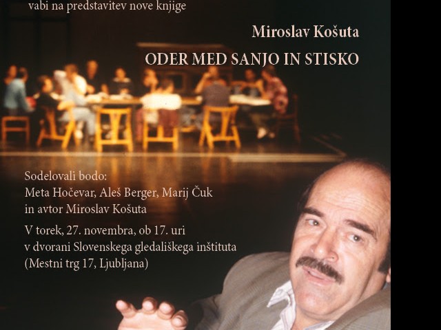 Pesnik in pisatelj Miroslav Košuta je bil v preteklosti dolga leta tesno povezan s Slovenskim stalnim gledališčem v Trstu. Tri sezone je bil dramaturg in član umetniškega vodstva, pozneje pa kar enaindvajset let ravnatelj in umetniški vodja Slovenskega stalnega gledališča. Že v svoji z naslovom Orošeno okno je napovedal novo knjigo z zapisi, povezani z gledališčem.