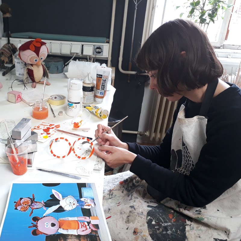 Priprave Sovice Oke na razstavo, konservatorsko-restavratorska delavnica Lutkovnega muzeja v Lutkovnem gledališču Ljubljana