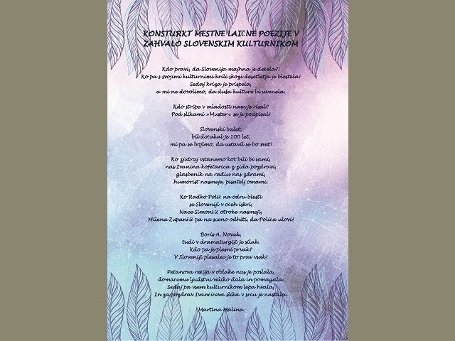 Povezava: Konstrukt mestne laične poezije v zahvalo slovenskim kulturnikom