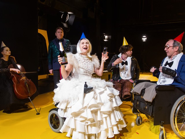 Aktualne predstave, tolmačene v znakovni jezik, so Mazohistka, Žogica Marogica, Zabava za Borisa in Realisti. Predstave tolmačijo tolmači slovenskega znakovnega jezika Nataša Kordiš, Natalija Spark, Martin Klepec in Karin Brumen, ki so otroci gluhih staršev in so znakovni jezik spoznavali že od rojstva.
