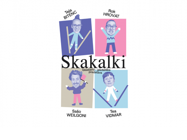 Gledalci bodo spoznali pet po značaju zelo različnih skakalk: zaspano Sanjo, borko za pravice Artemido, skakalko Magno, ki se pogumno spoprijema s svojimi strahovi, hitro Brzico in Venero, ki stavi na lepoto v srcu. Vse like v predstavi odigrata ustvarjalki, ki pa na odru nista sami. Pri izvedbi skokov jima pomagata performerja Rok Hrovat in Sašo Weilgoni. Obenem bosta spodbujala občinstvo, da se vživi v tekmo, skandira parole in podpre športnice. V predstavi bo, kot napovedujejo v Pionirskem domu, mogoče slišati tudi vrsto glasbil, med drugim ukulele, harmoniko, bobne.