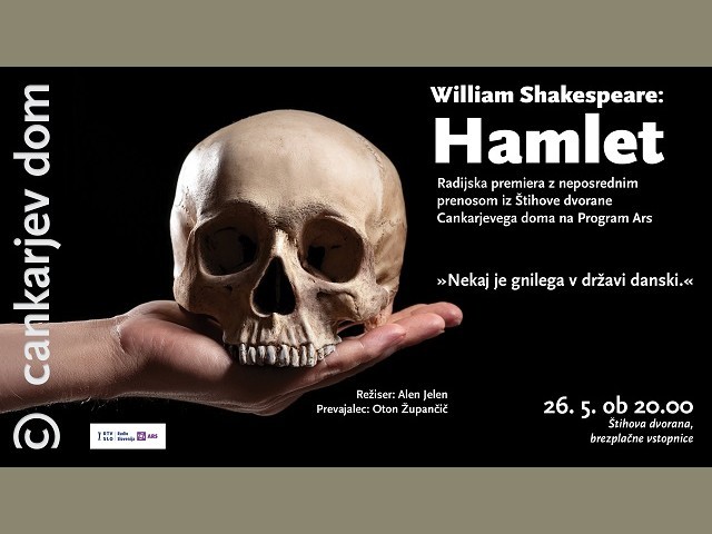 Ko se po smrti danskega kralja prikaže skrivnostni duh, princ Hamlet začuti dolžnost in slo po maščevanju svojega očeta. Notranji boj med moralnimi dilemami in željo po maščevanju Hamleta peha v niz odločitev, ki se končajo z usodno umiritvijo danskega dvora Elsinor. Vsem dobro poznana tragedija, ki jo je William Shakespeare napisal na prelomu 16. in 17. stoletja (izid ocenjujejo v letih med 1599 in 1602), bo 26. maja v Cankarjevem domu dobila svežo radiofonsko podobo.