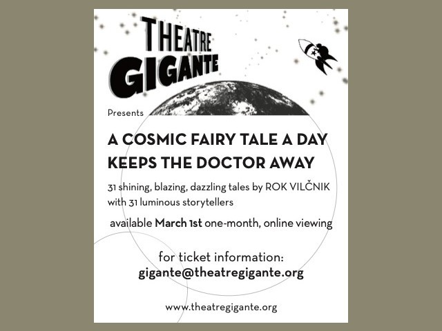 Virtualni projekt z naslovom Ena vesoljna pravljica na dan odžene zdravnika stran bo režirala Isabelle Kralj, gledališka ustvarjalka, plesalka in koreografinja slovenskih korenin, ki skupaj z Markom Andersonom že 33 let vodi gledališče Theater Gigante v ameriškem mestu Milwaukee v Wisconsinu.