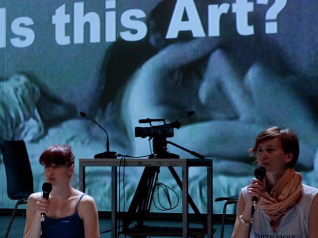 Druga predstava na festivalu, ki se je prav tako bolj kot s specifično temo želela ukvarjati z metasredstvi teatra, je bila Ne.za.vedno Ryuza Fukuhare in Sama Potokarja. A v nasprotju s predstavo Vlada Repnika in Martine Ruhsam Ne.za.vedno ni razvila nikakršnih konceptualnih mehanizmov, oziroma bi lahko rekli, da je bil njun koncept ravno odsotnost vsakršnega koncepta oziroma čista igra. Ta gesta pa ni proizvedla ničesar drugega kot provizoričen nabor znakov, ki so, namesto da bi proizvajali pomene in intenzivnosti, lahko gledalcu ponudili zgolj ekshibicionizem brez vsakega smisla in pa klovnovstvo z ne preveč dobrim okusom. Morda je bil prvoten namen ustvarjalcev ustvariti kaos pomenov, iz katerega bi se skozi improvizacijo svetlikali posamezni smisli, a s preveliko mero pozerstva in s prenasičeno uporabo sodobnogledaliških klišejev in stereotipov je predstava lahko izpadla zgolj kot cinično posmehovanje mediju gledališča ter vsem, ki se z njim ukvarjamo in poizkušamo v njem še najti klice smisla. Seveda je tako posmehovanje legitimno, a za »nevernike« vseeno obstaja možnost izumljanja boljših alternativ ali pa preprosto preseči gledališče v njegovi konvencionalni obliki eksplikacije končnih produktov. Za drugačna pričakovanja gledalca bi pač moral biti spremenjen celoten dispozitiv, v katerega sta ustvarjalca tako anarhistično vstopila, a se ne zdi, da bi ga uspela podreti.