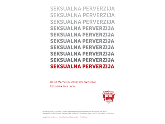 MIŠO: Če se za konec dotakneva še jezika, ki je zelo pomemben gradnik dogajanja in vzdušja v Mametovem besedilu, moram najprej izraziti zadovoljstvo, da smo lahko delali s tako imenitnim prevodom Zdravka Duše. Nato pa smo ga skozi proces z igralci in lektorjem Renatom Horvatom zelo premišljeno aktualizirali in lokalizirali. Zdi se mi, da nam je uspelo besedilo dobro posodobiti, da jezik še zmeraj odlično funkcionira in da je ohranil prvine originala. Je neposreden, vsakdanji, prizemljen, urban. Vem, da tega vsi v gledališču niso vajeni – čeprav to ni nič novega – in da morda komu to ni blizu, vendar vseeno upam, da bodo ljudje razumeli, zakaj je tak jezik bistven za podajanje te vsebine. Tudi perverzija, ki je uporabljena že v naslovu predstave, se bolj kot v vulgarnosti izraza in seksualnih praks izraža v perverziji nezmožnosti gradnje poglobljenih, pristnih, iskrenih, ljubečih odnosov.