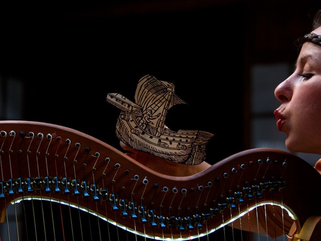 Zvezdana Novaković, avtorica glasbe in izvedbe, gledalca v predstavo povabi z nagajivo zarotniškim nasmehom; s svojo celostno podobo primerno izžareva čarobno naravo zgodbe. Gre za finski ep o kalevali, čudežnem glasbilu, ki ga junak zgodbe napravi iz okostja ulovljene ščuke in nanj zmore igrati le on sam. Harfa, sorodnica mistične kalevale, je medij za oblikovanje zgodbe in občutja, kot tudi glavni scenski element – z ostalimi minimalističnimi, a skrbno premišljenimi predmeti tvori atmosfero starodavnosti in mitičnosti. Režiser Tin Grabnar se znova dokazuje s preprostimi, a izjemno inteligentnimi pristopi; igralka zgolj z nekaj drobnimi figurami, ki jih nosi na obleki in s svojimi gestami (dlan prepričljivo spremeni v ribo ali z njo pokaže junakovo čustvovanje) poda zgodbo, pospremljeno z začaranim izvajanjem glasbe. Tudi prostor GT22 sinhrono diha s predstavo in ji nudi posebno intimo, ki dopušča svojevrstno zavezništvo med izvajalko in občinstvom. Kot je zapisani ep Kalevala zbirka poetičnih prikazov življenja v finski preteklosti, je Zgodba o harfi poetična glasba, ki uokviri gledalčev moment sedanjosti.