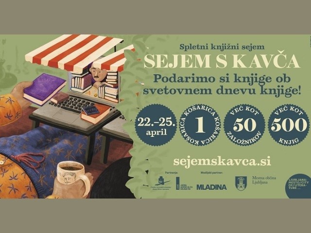 Ob svetovnem dnevu knjige bo med 22. in 25. aprilom vrata za štiri dni odprl Sejem s kavča (sejemskavca.si), skupna spletna knjigarna, v kateri bo več kot 50 slovenskih založnikov po ugodnih sejemskih cenah ponudilo več kot 500 skrbno izbranih knjig. Preprost nakup bo omogočala začasna sejemska spletna trgovina s skupno košarico in enotnim odpošiljanjem.