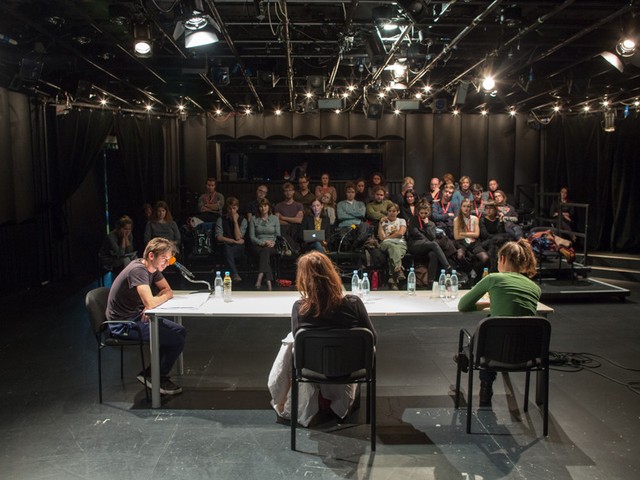 Po kratkem odmoru je sledil moderiran pogovor. Prvi del, ki je bil namenjen pogovoru o delu Jonasa Hassena Khemirija, se je zaradi svetovno aktualne tematike migrantov zavlekel kar do konca predvidenih dveh ur, ki sta nam bili namenjeni. Migranti so prisotni povsod. Slovenci smo s podobno, vendar ne popolnoma isto tematiko, seznanjeni že skozi dela Gorana Vojnovića (npr. Jugoslavija ter Čefurji raus). Večina nas pride v stik z migranti iz bivših jugoslovanskih držav, ki so nam po narodnosti blizu, na Švedskem pa migranti izhajajo iz veliko bolj oddaljenih (predvsem vzhodnih) držav, s popolnoma drugačno kulturo. Pri prevodu so se potrudili, da tega niso 'vrgli v en koš'. Čeprav smo morali zaradi časovne stiske le-ta pogovor opustiti ter se posvetiti drami Seciranje sneženja, se je razvnel tudi slednji pogovor o vprašanju spolne identitete ter slovenske dramatike, ki se s tem spopada. Drami, ki govorita o 'anomalijah' večinske družbe (migranti, ne-heteroseksualci) sta namreč tako močni ter interesantni, da si zaslužita več kot kratek opis in hiter klepet.
