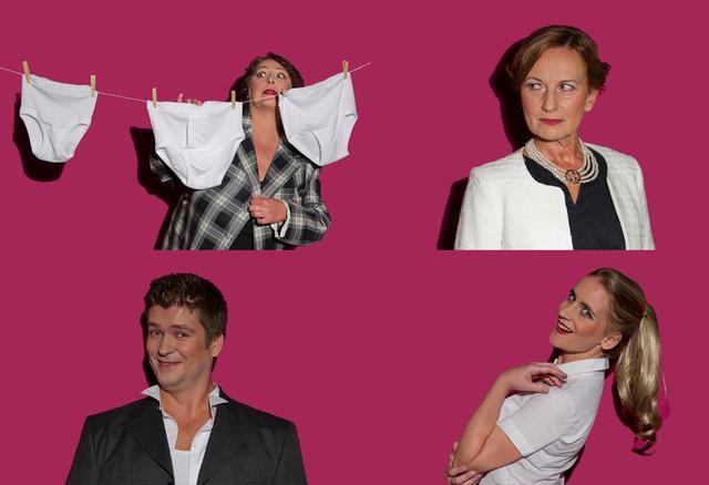 Vlogo gospodične Todd je prevzela Vlatka Oršanić, gospodične Pikerton Rebeka Radovan, mlade in radožive Laetite po Katja Konvalinka. V vlogi privlačnega tujca Boba nastopa Rok Bavčar.