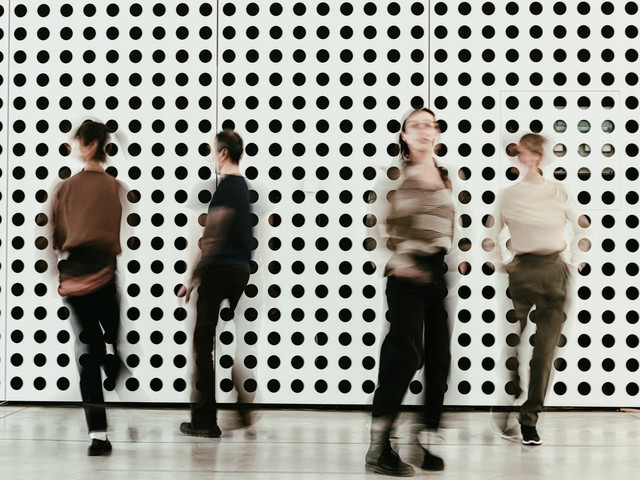 Ob 20. uri bo sledil performans Trenutek, ko vse obstane avtoric Kristine Aleksove in Anite Wach, ki bo uprizorjen premierno. Performans raziskuje cikličnost gibanja in družbenih paradigem ter odpira vprašanja o možnosti zaustavitve ali neizogibnosti nadaljevanja. Telesa performerjev se ujamejo v gravitacijo lastnih želja, preizkušajo meje vztrajnosti in ustvarjajo nevidne orbite. Fizične zakonitosti se prepletajo z družbenimi dinamikami, kar tvori poetično refleksijo o neizogibnem vračanju zgodovinskih vzorcev - ekspanzionizma, puritanizma, nadzora in migracijskih politik.