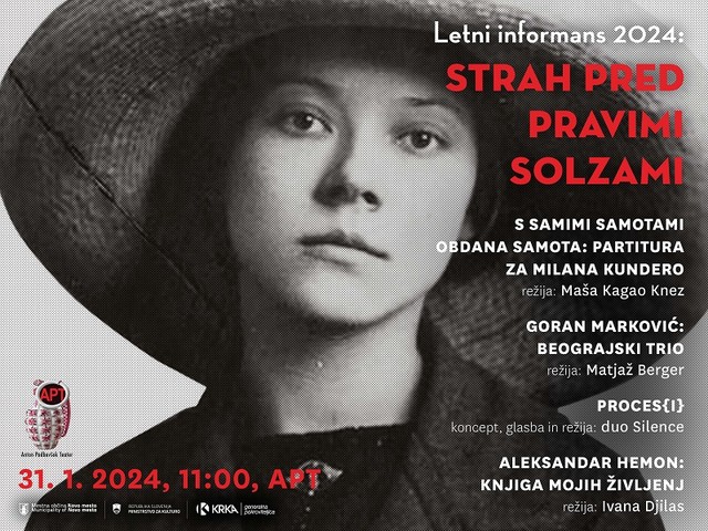 Na informansu so povedali, da v marcu v APT načrtujejo primero predstave z naslovom S samimi samotami obdana samota: Partitura za Milana Kundero v režiji Maše Kagao Knez. Po režiserkinih besedah gre za gledališko-plesno uprizoritev, ki ni mišljena kot uprizarjanje del omenjenega češko-francoskega pisatelja, ampak kot počastitev in zahvala njegovemu literarnemu opusu. V predstavi, v kateri bodo sodelovali štirje plesalci in Borut Veselko, bodo skušali uprizoriti sobivanje med besedo, glasbo in gibom, je povedala na današnji predstavitvi programa APT.