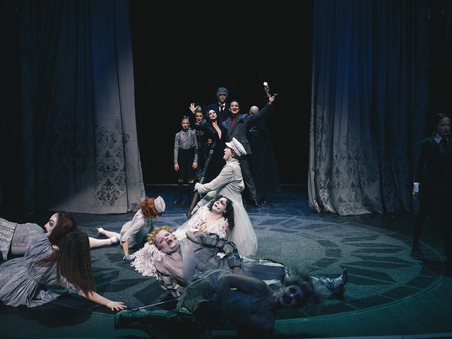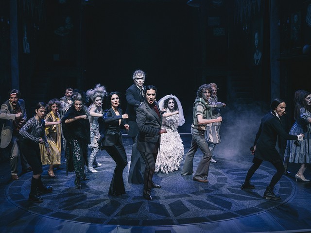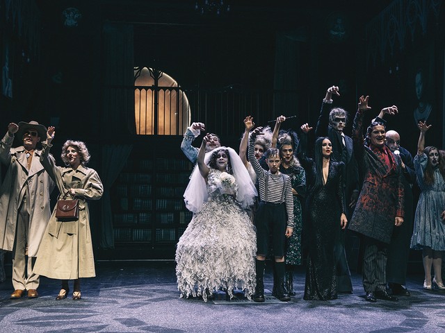 Avtor stripa si je Addamsove zamislil kot satirično nasprotje ameriškega ideala družine 20. stoletja. Portretiral jih je kot ekscentrične aristokrate z zateženim okusom in bizarnimi hobiji, ki se ljudem v njihovi okolici pogosto zdijo nenavadni in celo zastrašujoči, čeprav v njihovi družini pravzaprav vladata red in harmonija. Avtorji mjuzikla so njegov zaplet osredotočili na Wednesday, ki je iz otroka zrasla v mlado dekle in se zaljubila, vendar njen izbranec Lucas Beineke prihaja iz popolnoma običajne družine iz Ohia. Ker se je treba prepričati, da bosta družini zaljubljencev med seboj lahko shajali, Addamsovi dobijo obisk. Mnenja o poroki se pri vseh starših razhajajo, a Wednesday je kljub preprekam neomajna.