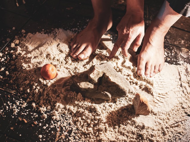 V grškem mitu Dedal, graditelja labirinta na Knososu, izumi krila, s katerim s sinom Ikarjem pobegneta s Krete. Ker Ikar leti preblizu sonca, umre. Kaj se zgodi z očetom, ki je izgubil sina? Kako naj se oče osvobodi travme izgube? Ta točka je izhodišče predstave. Ta se dogaja danes, v modernem svetu, na mediteranskem otoku na migranstki ruti iz Sredozemlja v Evropo.