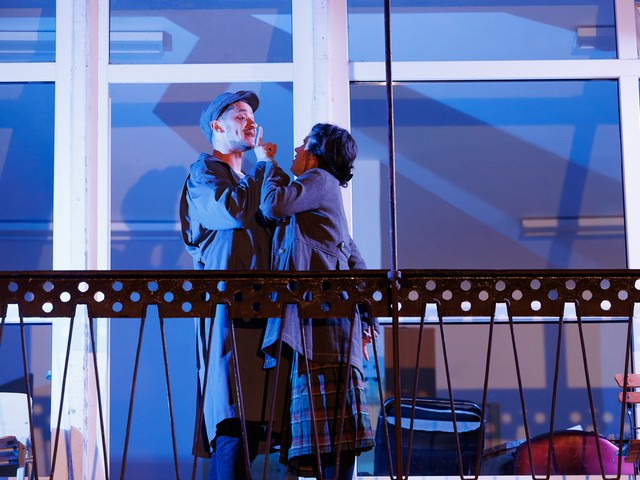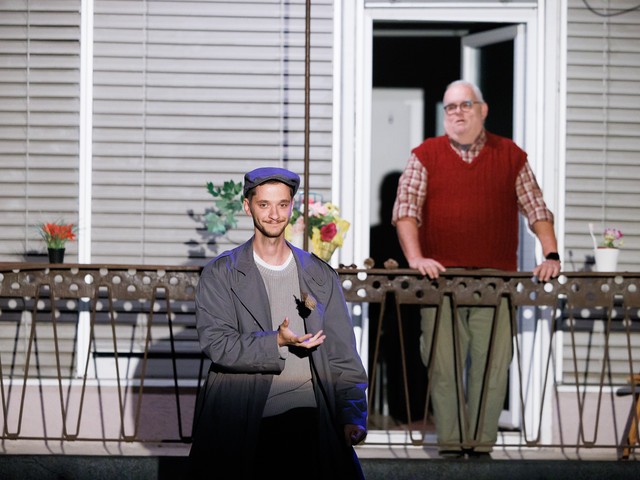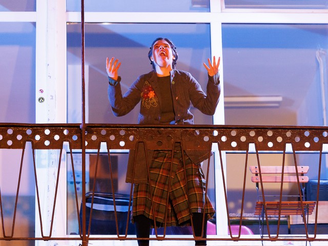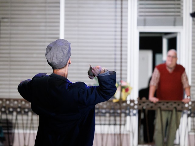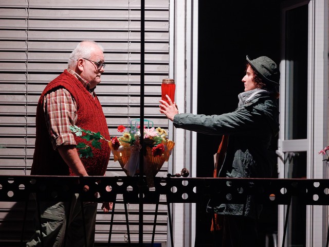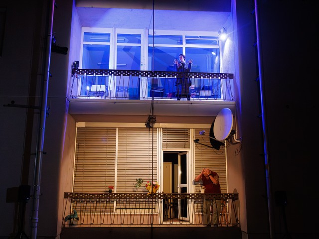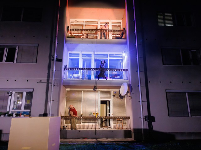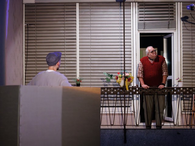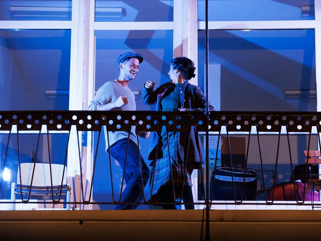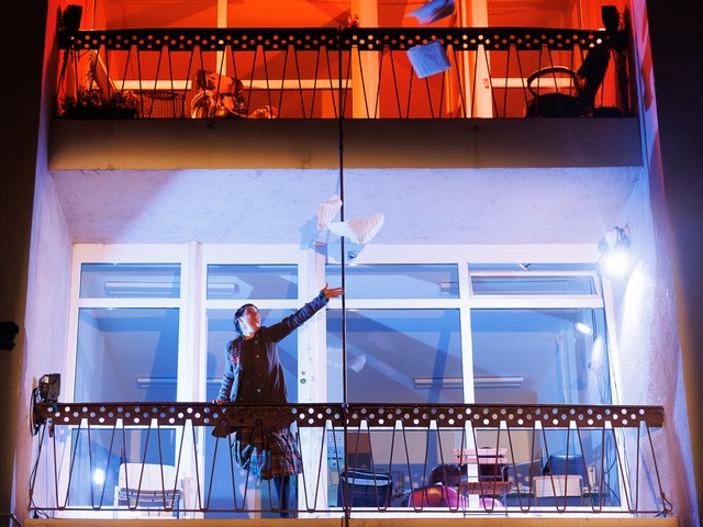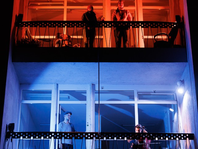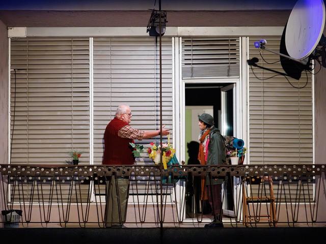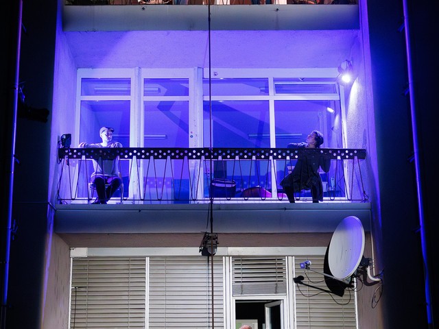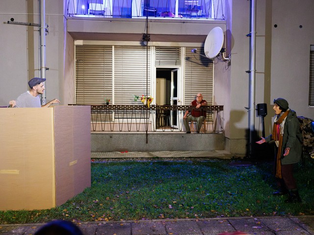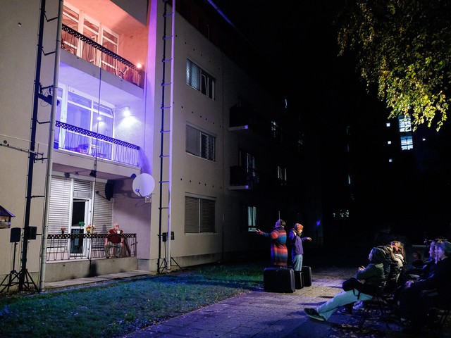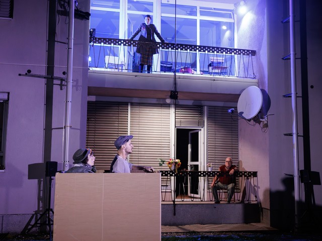 Med stanovalci se tekom predstave razvijajo odnosi – tako med skupaj živečimi pari, kot tudi med sosedi, pri čemer njihova komunikacija poteka na nekoliko »retro« način: osebno, z balkona na balkon. Del dogajanja se odvija tudi na dvorišču, pred vhodom v blok.
