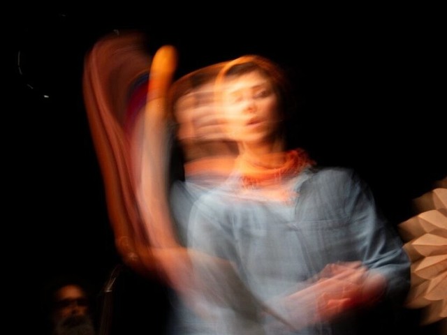 Žonglersko-pripovedna slikarija z živo glasbo, ob kateri boste spregledali, da vidite, in vam bo jasno, da je temno.