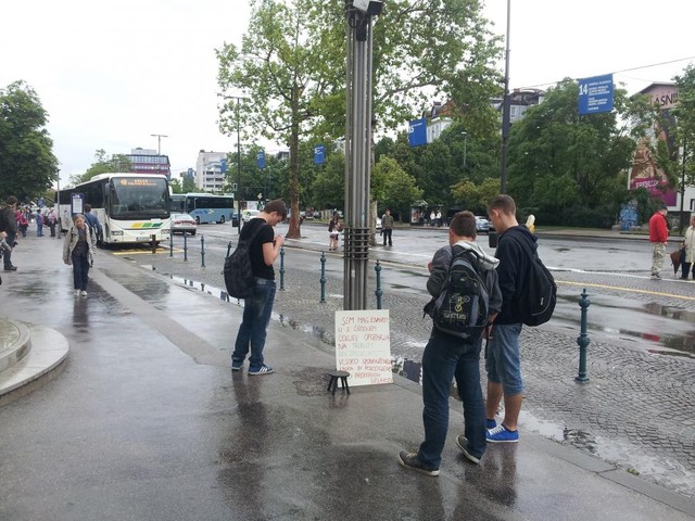 11.00-12.00: pred E-študentskim servisom na Borštnikovem trgu (s sloganom: „Ni statusa? Ni panike! Bova skupaj čistila čevlje...“)