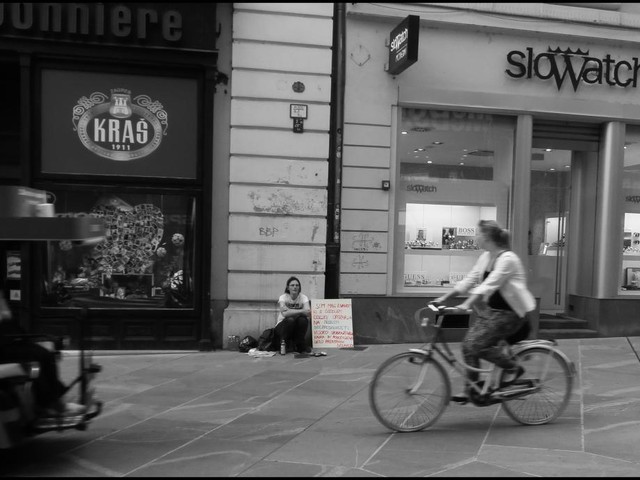 Se v nas prebudi sočutje? Usmiljenje? Sram? Jeza? Gnus? Občutki krivde? Zaničevanje? Ali bomo s tem, ko ji bomo nastavili čevelj pokazali, da jo preziramo in ponižujemo ali pa bomo - ravno nasprotno – s to gesto sporočili, da razumemo njen položaj in da jo pri tem boju podpiramo? Bomo šli mimo v upanju, da nas ne opazi, da bo lahko naše življenje še naprej drvelo po ustaljenih tirnicah in se bomo lahko z grenkim priokusom vrnili v zavetrje varnih domov?