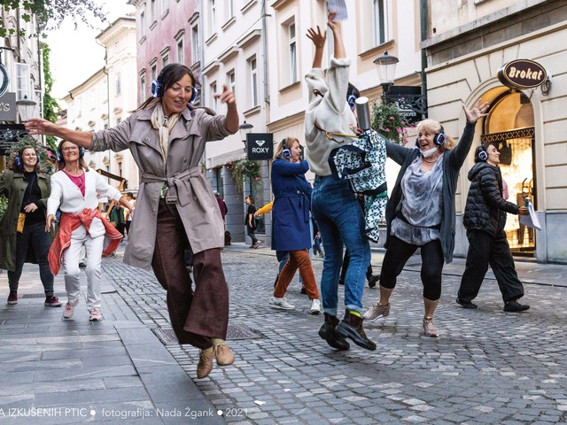 Pozno popoldne se refleksiji pridruži praznovanje. Prelet je trenutek, ko misel preide v izkušnjo, beseda v telesnost in teorija v ritem – ko jata znova vzleti kot eno telo. V večerni prepletenosti gibov in zgodb vas bo popeljal Iztok Drabik Jug, ki bo razprl prostor za skupno gibanje, poslušanje in soustvarjanje.