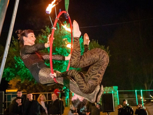 Atraktiven zračno-ognjeni šov s solo, duo in trio točkami na svili, vrvi in obroču, ki vam bodo pospešile srčni utrip in jemale dih.