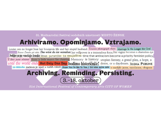 31. festival Mesto žensk se bo letos osredotočil na več kot 30-letno zgodovino društva in festivala, hkrati pa bo premišljeval o strategijah zgodovinjenja, usmerjenega v prihodnost. S fokusom na naše arhive, bomo gradile iz zgodovine Mesta žensk in jo naredile bolj dostopno ter odprto za raziskovalke_ in zainteresirano javnost. Dokumente bomo obudile z živim spominom tistih, ki so v preteklosti z Mestom žensk sodelovale_, ter z deli mladih sodobnih umetnic_v Sloveniji, ki so se razvijale_ in odraščale_ skupaj s festivalom. Vključile pa bomo tudi prakse starejših generacij umetnic_, ki so na festivalu razstavljale_ in ki se v svojih delih ukvarjajo z arhivi. Kot opozarja Giulia Palladini: »Čeprav naj bi arhivi nasprotovali izgubi, so rojeni iz nje. S tem ko vznikajo iz izgube, jo na nek način tudi predstavljajo. Kot da bi tisto, česar ni, arhivu dajalo moč, da se pokaže in spregovori.«
