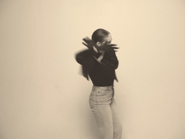 Na odru je vzpostavljen nekakšen zvočni konflikt: ambientalna glasba, ki je plesalki poprej pomagala pri ohranjanju zbranosti, posledično pa tudi pri vzpostavljanju prave intenzitete (zgornjega dela) telesa, se porazgubi v glasnih rezkih zvokih in njihovih množečih se odmevih.