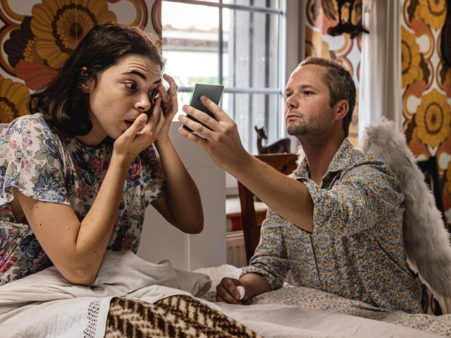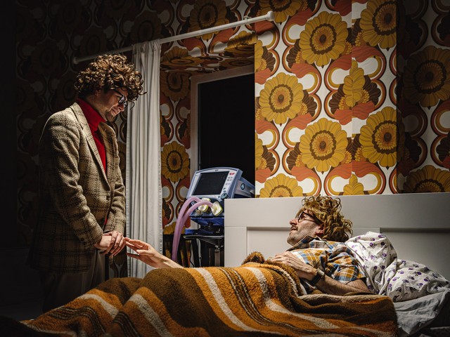 Kot že vsa prejšnja poglavja dodekalogije tudi 1979 in 1980 nadaljujeta izrazito koherenten gledališki izraz celotnega cikla, ki izkazuje mojstrsko obvladovanje posameznih gradnikov gledališke uprizoritve in njihovega prepletanja. Čeprav režija Tomija Janežiča (asistentka Iva Olujić) na zunaj ter v trajanju predstave deluje precej preprosta, se njena kompleksnost izraža v subtilno zniansirano izgrajenih likih, ki jim situacije omogočajo gladko in hipno preigravanje. Še posebej pomenljiv dosežek, saj veliko število likov uprizorijo vsega skupaj trije igralke_ci. Skope mizanscene so bolj osredotočene na poudarke, ki jih lahko ustvarjajo telesa v prostoru (skupni pogled v nebo/strop, premik na posteljo ...), kot na grajenje realističnih situacij. Stalnica ostajajo prinašanja in odnašanja objektov v oziroma po prostoru, ki meandrirajo med razpiranjem dodatnih vsebinskih plasti, funkcionalnim odpiranjem ali praznjenjem prostora igre in ustvarjanjem sidrišč za občinstvo, v prisotnosti katerih se posamezna zgodba odvija. Majhno prizorišče je ponovno do potankosti izgrajeno s scenografijo Branka Hojnika, ki tokrat v siceršnji okvir zgodovinsko točnih barvnih palet in elementov vnaša določene stilske asinhronosti (Ikeina zakonska postelja), vendar ta kolažnost ne prinaša nikakršnega zasuka v uprizoritvenem jeziku. Izjemno efektivno je minimalistično svetlobno oblikovanje, ki ga scenograf podpisuje v tandemu z režiserjem, saj vnovič operira le z nekaj skrbno izbranimi stropnimi lučmi in klinično belo svetlobo, ki seva skozi okna, a navkljub majhnemu naboru elementov uspe v njih najti izrazito močne lučne krajine. Ker manjše število igralk_cev nastopa kot večje število likov, do izraza še posebej prihaja iznajdljiva kostumografija Marine Sremac, ki se z epoho sedemdesetih hudomušno poigrava, prepleta vzorce in materiale ter podpira gladke premene identitet likov, s tem ko posamezne akterke_je opremi s prepoznavnimi lasuljami, očali ali drugimi kostumskimi detajli, s čimer gledalkam_cem omogoča njihovo hipno prepoznavanje. Morda se tudi zaradi sicer dobrodošle odsotnosti videoinsertov 1979 in 1980 zdita nekoliko manj zavezani naslovnima letoma, kratke povzetke ključnih dogodkov nam prebere režiser uprizoritve, a so dogodki, ki uprizoritvi povezujejo z naslovnima letoma, bolj zasebne narave. Posledično je v zvoku manj prisotna izbrana popularna glasba iz obravnavnih let ter bolj v ospredje stopi glasba Sama Kutina, ki se s svojo izrazno močjo izkazuje kot izjemno močna situacijska podpora in gledalski smerokaz. Ker sta 1979 ter 1980 še vedno izrazito logocentrični uprizoritvi in temeljita na pripovedovanjih, ki le redko zdrsnejo v dialoške prizore, srčiko podajanja vsebine predstavljajo igralske kreacije nastopajočih. Vloga prikupno zmedenega Zorattija se uspešno prenese s filmskega ekrana na oder, kjer performer svojo maniro nekoliko odtujenega komičnega poudarjanja razplasti preko mnoštva nastopajočih. V izrazno sorodni vlogi se mu pridružuje Stane Tomazin, ki operira z raznolikimi telesnimi in verbalnimi duhovitostmi, medtem ko oba bolj tragične oziroma dramske situacije posredujeta z bolj umirjeno zadržanostjo, ki se umika od koketiranja z gledalkami_ci. Če se Stane v interpretaciji Staneta Tomazina kot dejaven akter priključi leta 1980, ko se priseli v vas Zorattijevih prednikov, se Anuša v interpretaciji Anuše Kodelje pojavi šele v sklepnem epilogu, ko kot medicinska strežnica skrbi za enega izmed vaščanov, ki je v eksploziji izgubil vse ude in obraz in bil poslan v oskrbo v samostan, kjer je kot medicinska strežnica delala tudi Anuša. Kodelja tako v glavnini uprizoritev nastopi v drugih figurah, praviloma nonah in mamah, med izstopajočimi pa gre izpostaviti slepo »svetnico«, s katero Kodelja podobno kot poprej z gluhonemo Anušo izkaže precizno izklesano igralsko in glasovno transformacijo. Bodisi zaradi neke nezavedne spolne zaznamovanosti bodisi zato, ker so večji del vojnega dogajanja preživele v zaledju in bile posledično zgolj priča grozljivim posledicam vojnega stanja, so vloge žensk bolj razigrane v dramskih, melanholičnih in otožnih tonalitetah, ki jih Kodelja občinstvu predaja drzno in izrazito širokosrčno. Četudi so ritmizacije določenih pripovedi na premieri še delovale nekoliko raztreseno, ni dvoma, da bo ta obsežni odrski material v prepričljivi izvedbi igralskega tria iz ponovitve v ponovitev le še zorel.