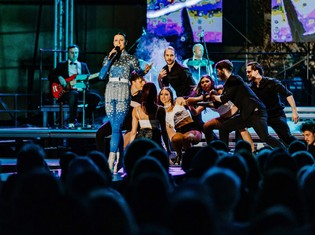 Plesalci, ki se izmenjujejo bodisi v parih, ženski ali moški dvojici bodisi kot del, priključen koreografiji pevke, so dodana vrednost. Njihovi nasmeški, prisotni na obrazih vso predstavo, žal ostajajo nedoumljivi, toliko bolj, ker povzročijo neskladje s sporočilom predstave, ki je za marsikoga, če ga povežemo z iskanjem življenjskega smisla in poguma, potrebnega za uresničitev življenjskega poslanstva oziroma v večini primerov dokaj zahtevnega procesa osebne rasti, katerega cilj – prej ali slej pripeljati nas do nedvoumnega sprejemanja sebe samega, točno takšnih, kakršni smo – je lahko precej težak ter boleč. Je pa temeljni nauk plesno-glasbenega spektakla umeščen prav v (oba) govorna posnetka.