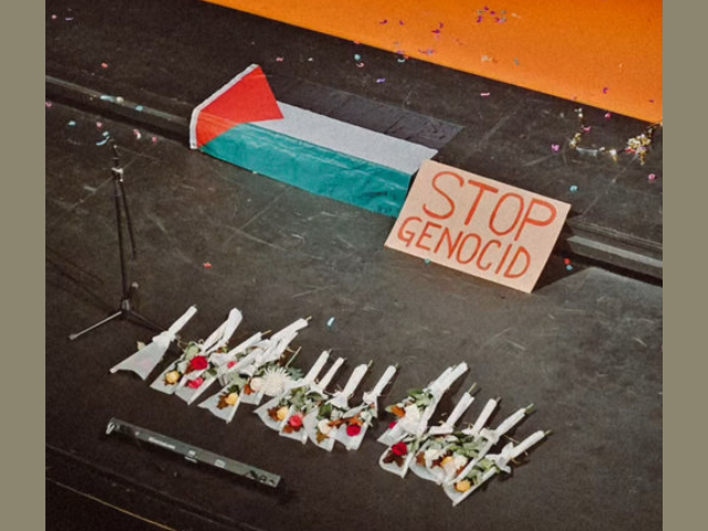 To tišino razumemo kot direktno podporo vojnih zločinov, ki jih Izrael izvaja nad Palestinci v Gazi in na Zahodnem bregu, zato v njej ne želimo sodelovati. Ta tišina ni zgolj zločin proti Palestincem, temveč proti celotnemu človeštvu.