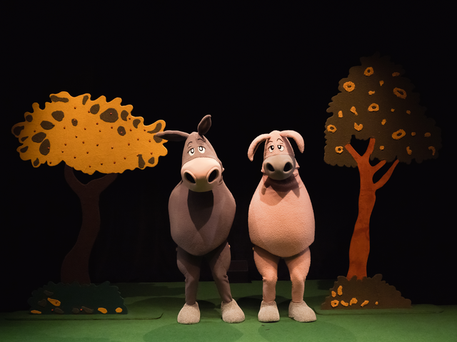 "Med lahkotnim pohajkovanjem ga preseneti neznani šum in kaj hitro se izgubi med drevesi. Našemu prestrašenemu junaku pogum povrne nepričakovano srečanje z novim prijateljem, živahnim Jelenčkom. Za hip se zdi, da bo vse v najlepšem redu, a že kmalu je spet sam. Osliček mora zdaj najti svojo pot in po njej steči pogumnejši kot kadarkoli prej. Na poti spozna, da včasih ni druge, kot da se s svojimi strahovi srečamo iz oči v oči," so zgodbo opisali pri LGL.