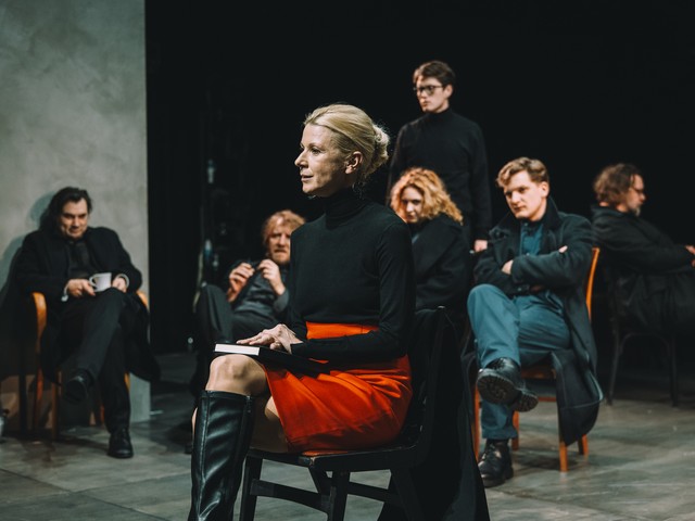 V predstavi, ki je dolga 170 minut, igrajo Branko Jordan, Matej Puc, Judita Zidar, Jožef Ropoša, Jana Zupančič, Diana Kolenc kot gostja, Tina Potočnik Vrhovnik, Tanja Dimitrievska, Tomo Tomšič, Primož Pirnat, Jernej Gašperin, Boris Ostan, Gaber K. Trseglav, Nika Manevski kot gostja, Tjaša Železnik, Jaka Lah, Peter Alojz Marn kot gost, Matevž Sluga, Ajda Kostevc kot gostja in Sebastian Cavazza v alternaciji z Borisom Kerčem.