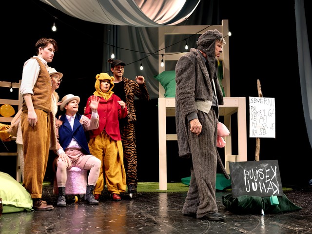 Da predstava prinaša toplino in prijateljstvo, so potrdili tudi igralci, ki so to občutili že na samih vajah. V predstavi nastopajo Vesna Pernarčič, Aljoša Ternovšek, Vesna Jevnikar, Miha Rodman, Borut Veselko in Peter Alojz Marn. Skupaj z avtorico so ugotavljali, da njihove vloge predstavljajo osebnostne lastnosti Christopherja Robina, ki so pomembne za njegovo odraščanje, od samega Puja, prek hiperaktivnega tigra, skeptičnega in depresivnega oslička, razmišljujočega zajca do prestrašenega pujska.