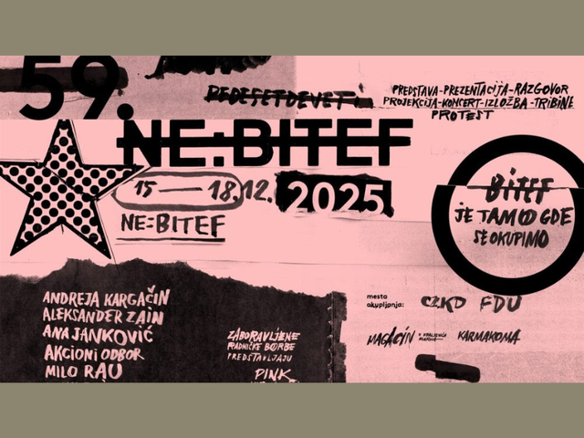 Pobudo ne:Bitef 2025 so samoiniciativno oblikovali srbski kulturni ustvarjalci, študenti, aktivisti in gledališko občinstvo. Gre za njihov neposreden in družbeno-kulturno angažiran odziv na odpoved izvedbe uradnega programa 59. festivala Bitef, do katere je prišlo po tem, ko je upravni odbor festivala prepovedal beograjsko gostovanje svetovno znanega režiserja Mila Raua z odmevno uprizoritvijo Sojenje Pelicot, letos poleti premierno predstavljeno na prestižnem gledališkem festivalu v Avignonu. Odločitev upravnega odbora festivala Bitef, ki je povzročila tudi odstop umetniške ekipe festivala, je sprožila ostro kritiko kulturnih institucij in ogorčenje med gledališkimi ustvarjalci in institucijami po Evropi, ki so izrazile solidarnost z umetniško ekipo in poudarile kulturni in civilizacijski pomen svobode izražanja v umetnosti.
