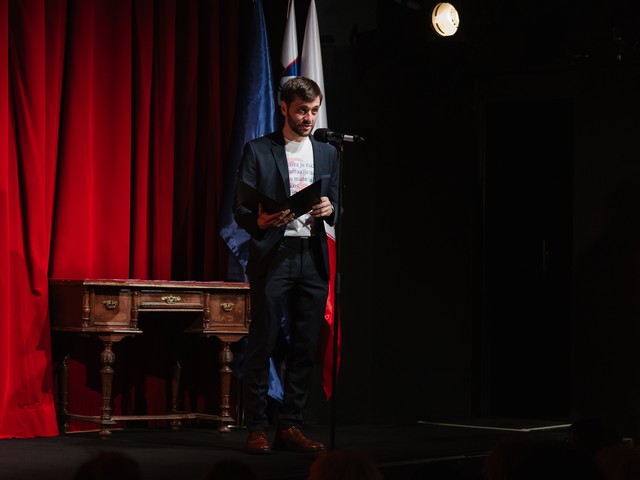 Kranjski župan Matjaž Rakovec je na slovesnosti spomnil, da Prešernovo gledališče Kranj letos zaznamuje pomembna obletnica, pred 80 leti je namreč dobilo ime po Francetu Prešernu, "in to ime nosi samozavestno in ponosno doma in v tujini". Menil je, da bi bil Prešeren danes zadovoljen, "da se še vedno zbiramo zaradi besede in ker še vedno verjamemo v moč zgodbe, predvsem pa zato, ker gledališče ostaja tisti prostor, kjer upamo povedati tisto, kar je treba povedati".