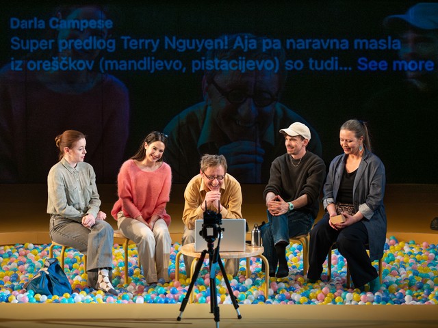 Ob vprašanju, kako dramo postaviti na oder, je Peter Petkovšek pojasnil, da so želeli prikazati vse nianse likov, ne da bi jih vnaprej obsodili. Na minimalistični in igrivi sceni Sare Slivnik ter v kostumih Gordane Bobojević bo nastopilo pet članov ansambla: Gregor Bakovič, Nina Valič, Saša Pavlin Stošić, Nina Ivanišin in Nejc Cijan Garlatti. Kot je omenila Ivanišin, pri uprizoritvi niso upoštevali rasne raznovrstnosti, saj bodo na odru samo belopolti.
